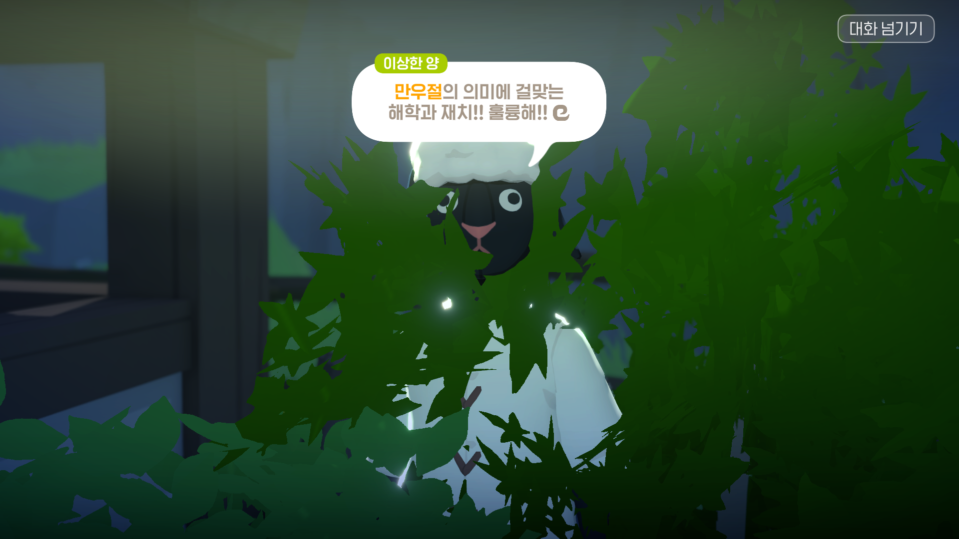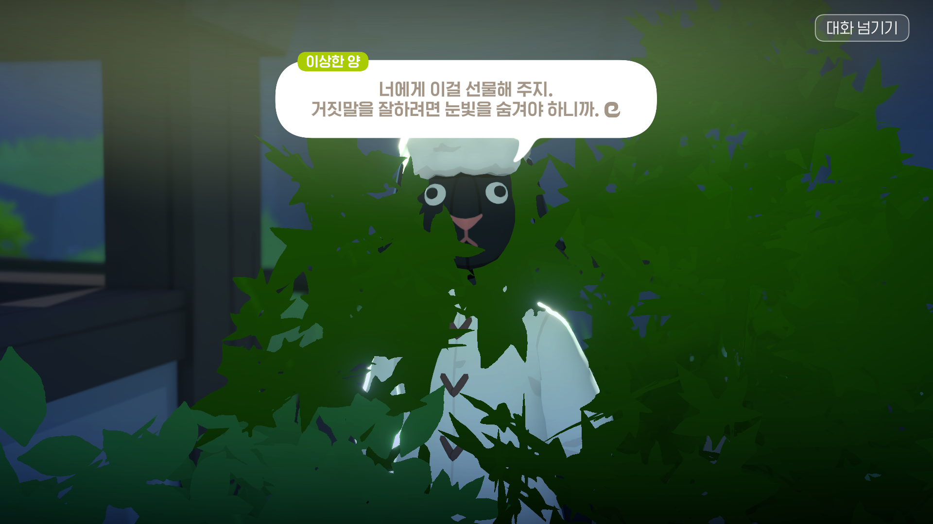 이상한 양과 대화를 하다보면 어디론가 사라지는데 근처 나무 아래에 숨어있는 것을 발견할 수 있다.